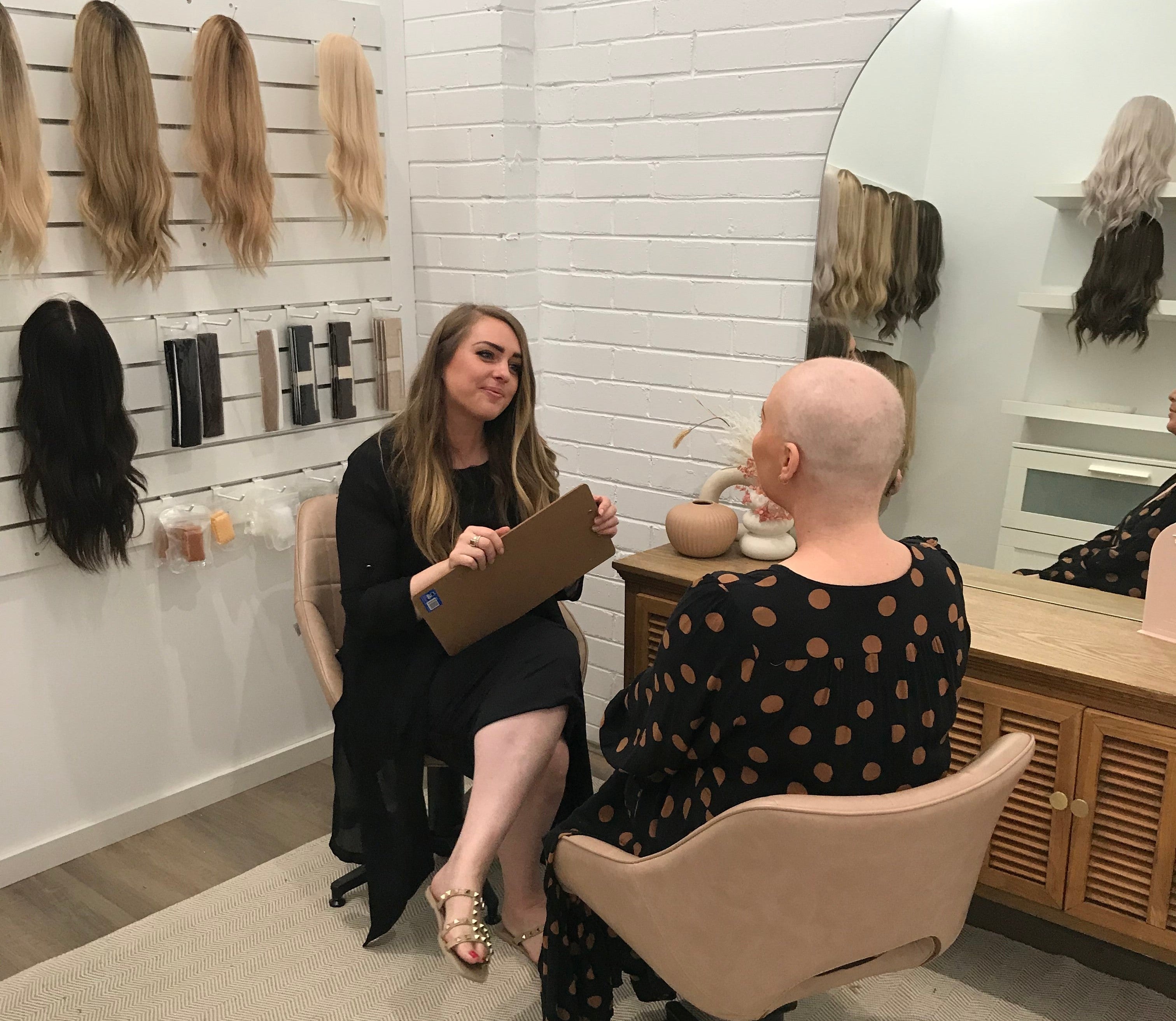 Our goal is to create the most beautiful and reassuring experience for all our clients on their hair journey. In our private consultation room, you’ll have the opportunity to ask all your questions, try on different pieces, and discover what works best for you.
